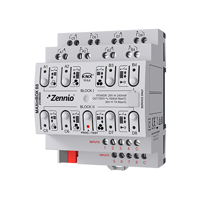 Zennio’s popular MAXinBoX portfolio provides various multifunctional actuators for lighting, blind and fan coil control within one device, along with additional logic functions. We are excited to announce the launch of their new MAXinBOX 88 variant which 8 relay outputs which can be used x8 individual outputs, or x4 shutter channels or x2 two-pipe fan coil channels, or a mixed combination of all. In addition, the device includes 20 logical functions, 2 Master Light modules, 8 analog-digital inputs, a heartbeat function and more.