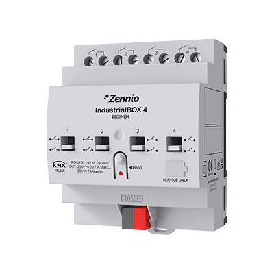 The new IndustrialBox actuator includes 4 individual outputs with industrial relays (20 A C-Load) with manual control of its outputs through switches that directly control the relays independently of the power supply. In addition, the device includes 20 independent logical functions and is a compatible with KNX Secure.