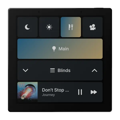 1Home Touch connects to the 1Home Server - gaining all the power and features of our flagship. Accessible through a beautiful interface. A fully customizable 4" LCD control panel that auto-configures itself into your KNX installation within seconds. No ETS setup, no manual mapping. Touch gives your clients instant control of: KNX devices & scenes, thermostats, lighting (incl. color & temperature), Sonos, and SIP-based intercoms (video + two-way audio).