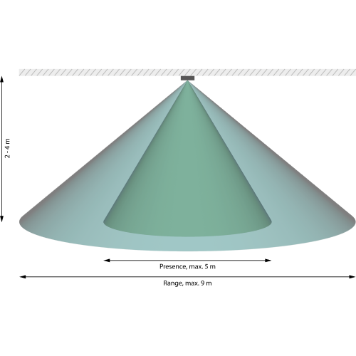 IP44 Presence detector with 2 sensors. Version for installation in hollow ceilings.