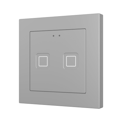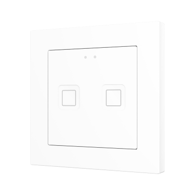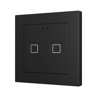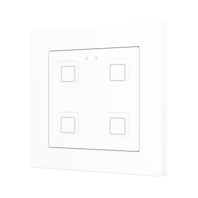 Family of flush fitting polycarbonate capacitive touch switches with customisable icons, to be combined with 55 x 55 mm frames and Zennio ZS55 switches and sockets. 1, 2, 4 or 6-button versions all available with RGB backlit icons that adapt according to ambient luminosity and proximity sensor. Tecla RGB 55 incorporates an internal temperature probe and thermostat as well as 2 analog-digital inputs to be configured as binary inputs, sensors, push buttons, temperature probes or motion detectors. Installation in standard back box with 55 x 55 1 to 4-gang frames.